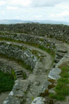 グリアノン・オブ・アリック 紀元前170年に完成したストーン・サークル。ケルト時代は墓として使用されていたそうだ。スゥイリー湾を眺める丘に、石の壁が円形状に中心を囲んで建つ。イタリア・ローマのコロシアムを想像したが、サイズは直径が10メートルと、ずっと小さい。5世紀から12世紀までこの地を統治したオニール一族が要塞として利用。石の壁の内側を居住地とした城にまで発展した時代もあったというから“使い勝手”のいい遺跡もあったもんだ。もちろん、現在は文化財として保護されている。石の壁の幅も広く、内部に隠し廊下が通されている。かがめば大人が通れる入り口が、円周に沿って3つ確認できた。入ると、真っ暗だが中腰で歩けるほどの高さがあり、広い。ここから外敵を見張っていたのだという。