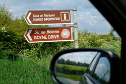 ニューグレンジ タラの丘からN51号線を東に30分ほど行くとたどり着く、紀元前3000年頃の古墳で、世界遺産に登録されている。 遺跡保存のため、入場者制限があり、1人の場合はグループツアーへの参加手続きが必要だ。低いドーム型の古墳は、直径88m、高さ15mもある。興味深いのは、この時代の人々が天文学の知識を持っていたことだ。中の王の墓につながる羨道は、冬至の日だけ入口の石の隙間から光が差し込み、照らし出される設計になっている。