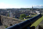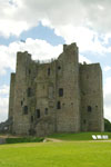 トリム城 ニューグレンジからN51号線をナヴァン(Navan)方面に戻り、R161号線に乗り継げばそのままトリム城(Castle Trim)の遺跡につながっている。ここは13世紀初めにノルマン人によって建てられた3階からなる城だ。城内にはボイン川が流れ、地元の家族連れが犬に水浴びをさせていた。要塞の一部を入り口の受け付けとして改築しているため、係員が当時の城の門番のように見えてくる。トリムの町を歩いてみるのもいい。通りの空には、運動会のような小さな旗が凧のように飾られており、かわいらしい。遠くに行かない限り、どこからでもトリム城が見えるため、京都に似た雰囲気も感じた。