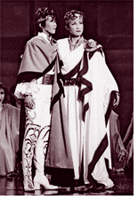 「暁…」は、「ブルータス、お前もか!」のセリフが有名なシェークスピア原作の「ジュリアス・シーザー」をもとに、ポップな音楽(甲斐正人)と現代感覚のファッション(有村淳)で見せる作品。冒頭の緞帳前で、